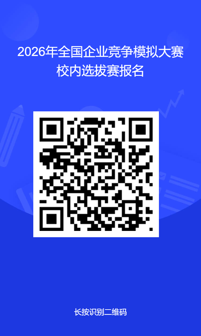 即日起至2026年2月27日22:00,分组别分赛道进行报名,每支队伍3名学生。其中,研究生组只能参加企业决策赛道。本科生组可选四个赛道,企业决策赛道和企业运营赛道竞赛同步进行,要求每名选手每支队伍只能从中选择参加一个赛道。供应链决策赛道和数智沙盘赛道同步进行,要求每名选手每支队伍只能从中选择参加一个赛道。每队由3名参赛队员组成。用微信“扫一扫”下方二维码进行报名,填报完整信息。参赛报名可选择团队报名和个人报名两种方式,以团队形式报名还需填报团队名称等信息,以个人形式报名的,报名后会按专业统筹组队。必须使用真实学生身份报名,若冒用他人姓名申报参赛,一经发现即取消该队参赛资格。